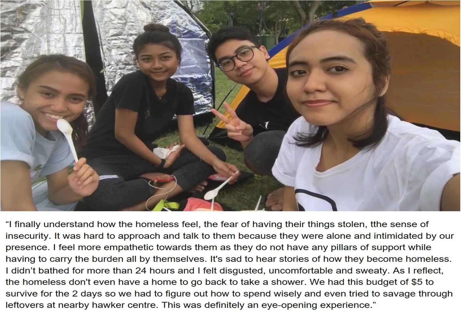 “They also wanted to experience a day in the life of a homeless with limited cash, to