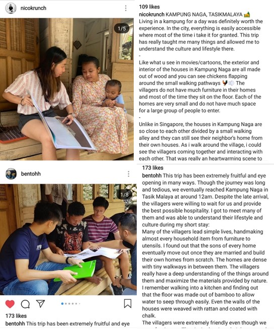 Instagram posts published by the students reflecting on the project.